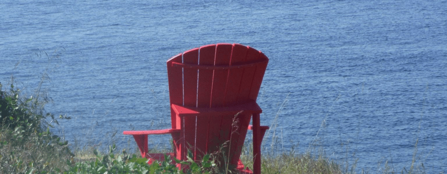 “They” are pairs of red Adirondack chairs, placed by Parks Canada in well over 100 locations across Canada, the first ones appearing in Gros Morne National Park over three years ago. they serve no purpose other than to invite the traveler to sit and linger and take in the view, and they are delightful.